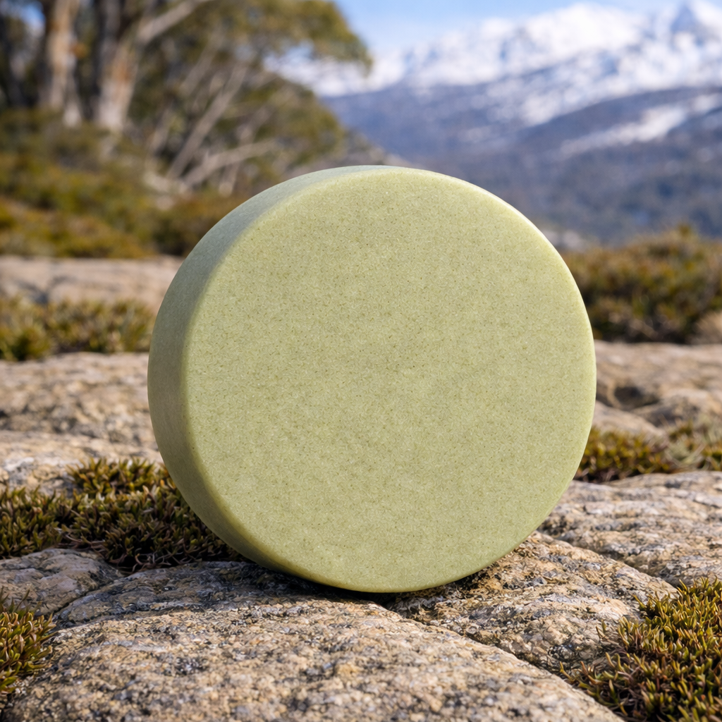 Inspired by the crisp air and earthy scent of the Australian high country, this shampoo bar blends the invigorating aroma of eucalyptus peppermint with the grounding notes of cedarwood and rosemary. It gently cleanses with a lush, creamy lather thanks to coconut-derived ingredients and nourishing botanicals.