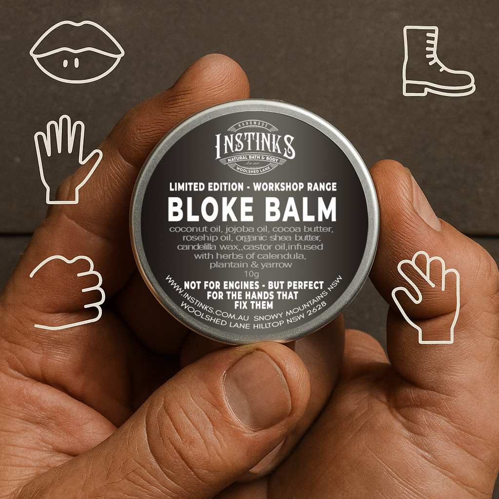 Rugged, reliable, and ready for anything. Our Bloke Balm is an ultra-firm, all-purpose skin balm designed for hardworking hands and rough patches. Perfect for dry knuckles, cracked lips, scuffed elbows, or anywhere that needs a bit of heavy-duty care.